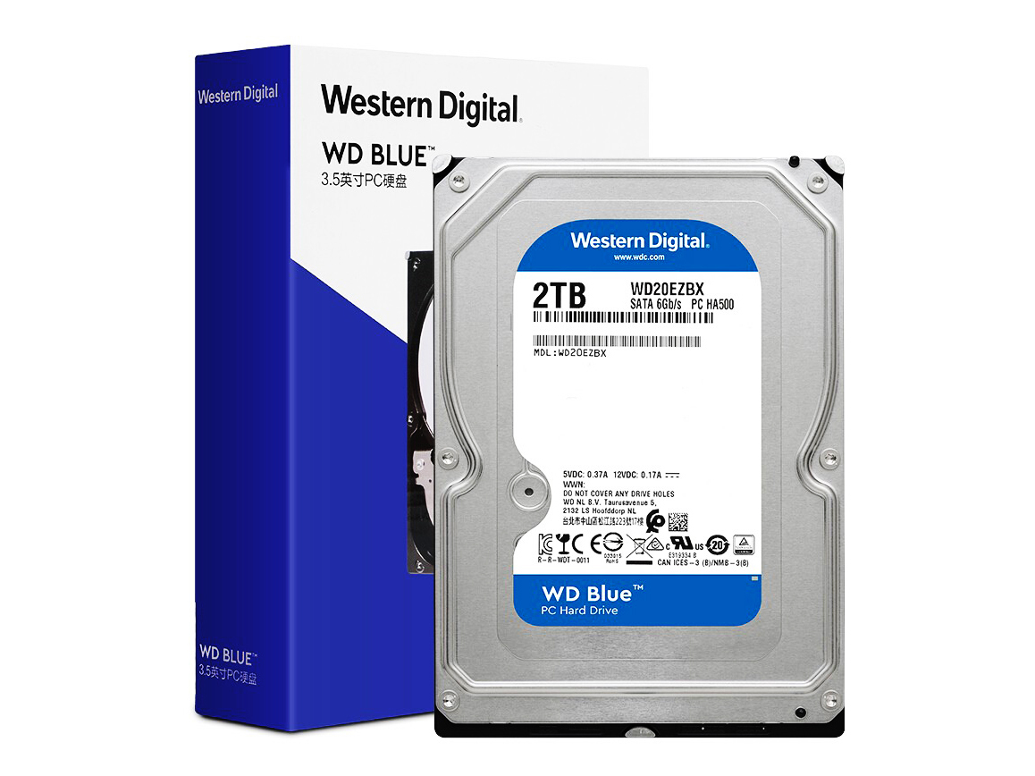 WD西部数据WD20EZAZ台式机硬盘2T西数蓝盘2tb64M/256M缓存